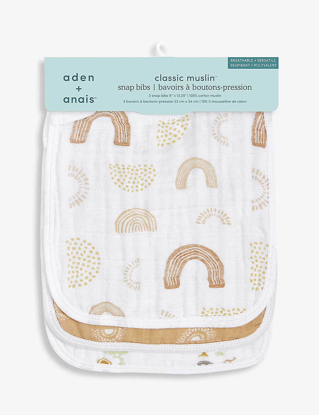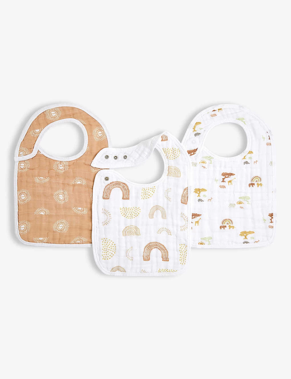 Aden + Anais Keep Rising Graphic-print Organic-cotton Bibs Pack Of Three