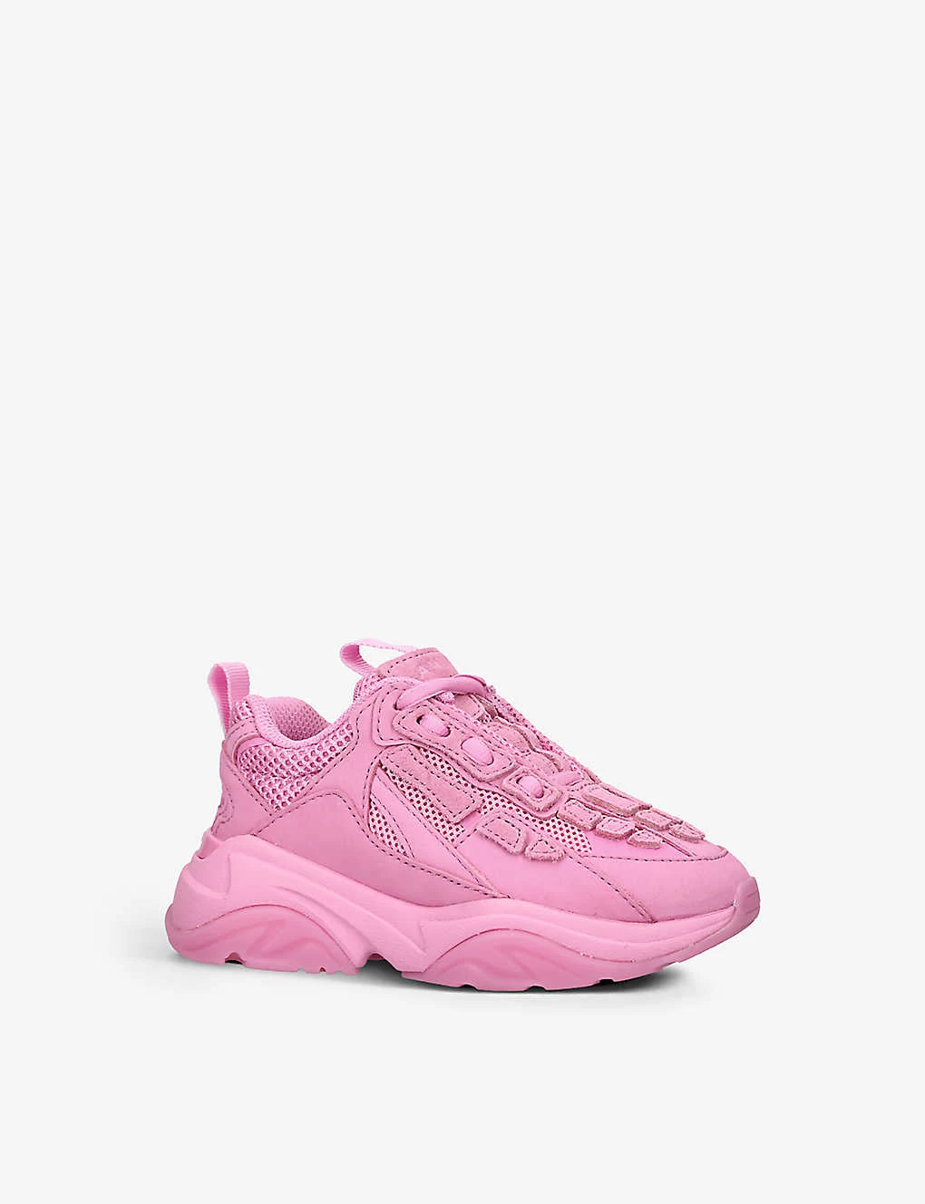 - Round toe, pull tab at back, branded logo on tongue, contrast mesh panels, sculptural chunky sole