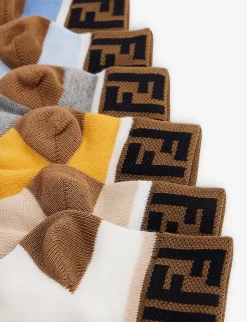 FENDI Branded-cuff Ankle-length Pack Of Seven Cotton-blend Socks