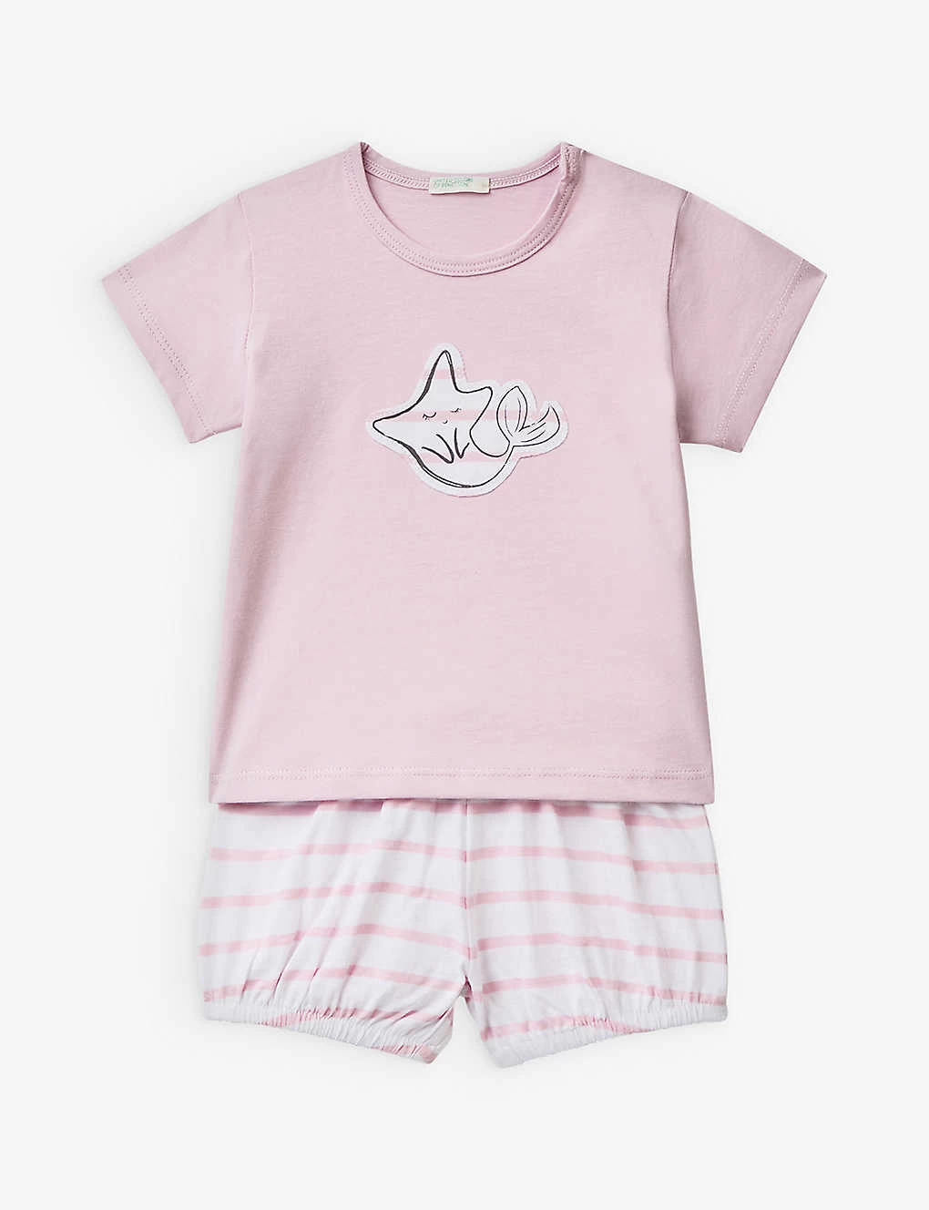 Benetton Crab T-shirt And Striped Shorts Cotton Set 1-18 Months