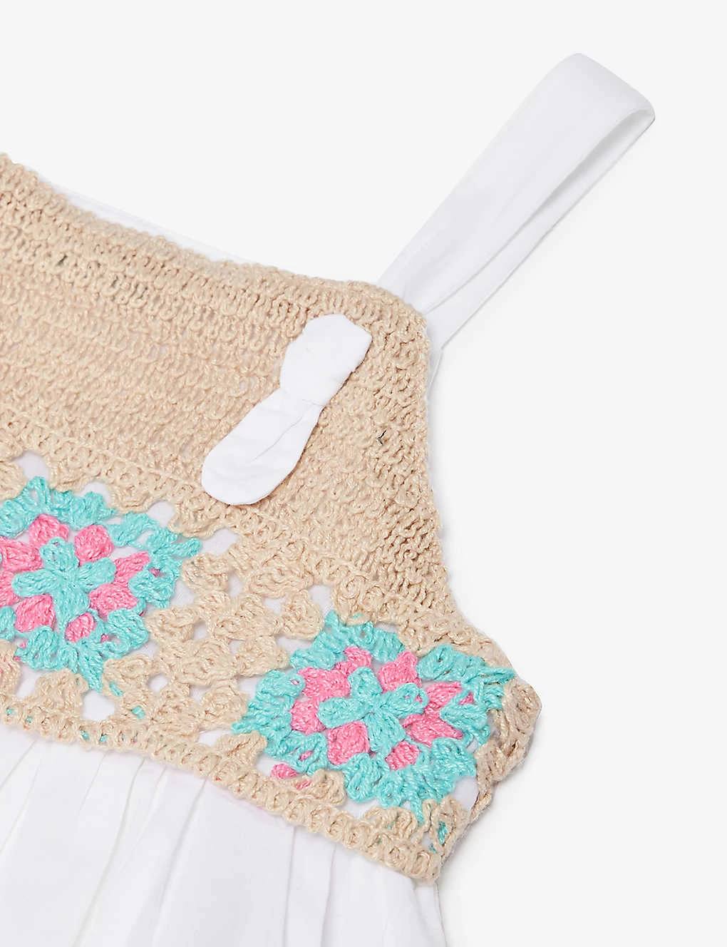 Benetton Crochet-panel Square-neck Cotton Dress 6-14 Years