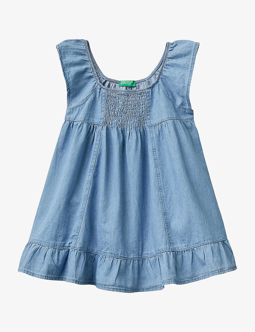 Benetton Frilled-hem Shirred-back Cotton-chambray Mini Dress 1-6 Years