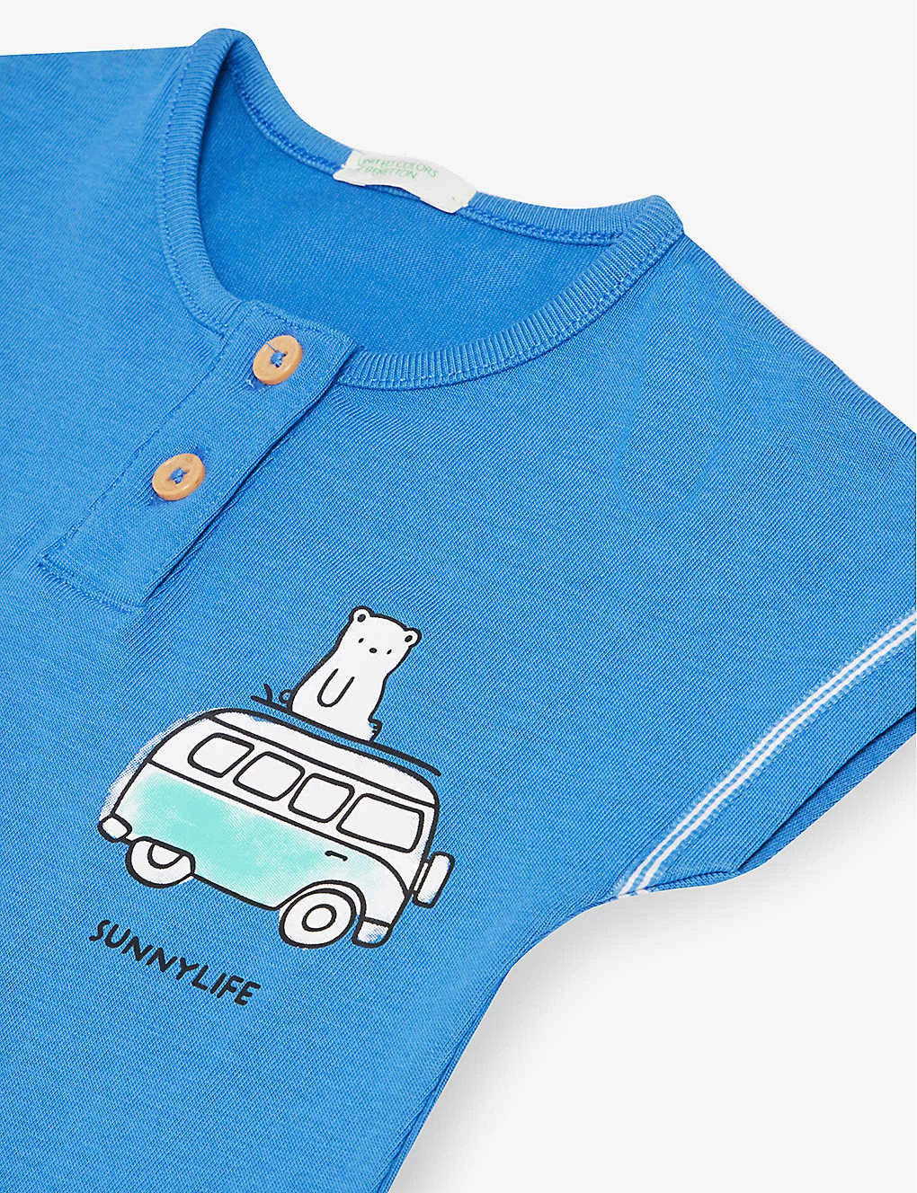 Benetton Graphic-print Stripe-cuff Short Cotton-jersey Body Suit 1-18 Months