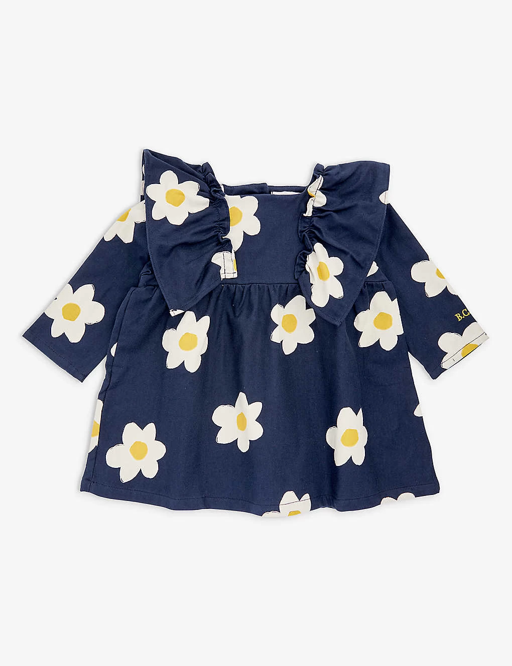 Bobo Choses Flower-print Ruffled-shoulder Cotton-twill Dress 6-24 Months