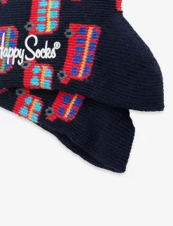 Happy Socks London Bus Ankle-rise Stretch-organic-cotton Blend Socks 12 Months-9 Years