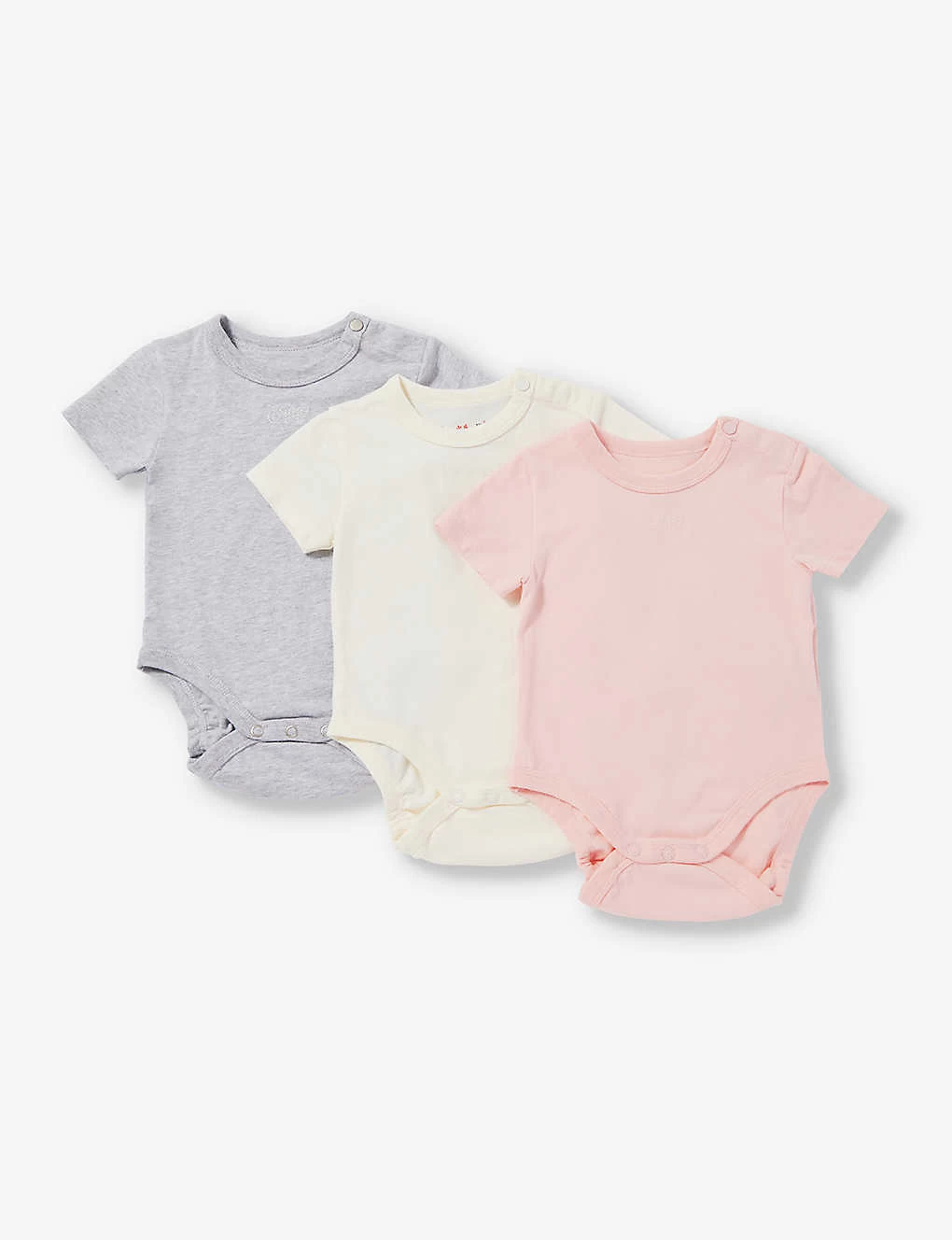 Brand Embroidered Three-piece Cotton-jersey Babygrow 3-12 Months