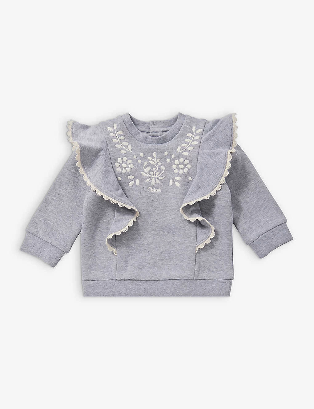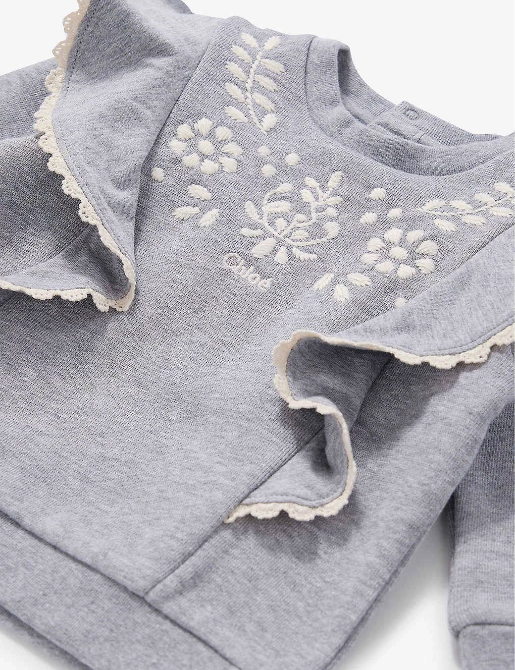 Chloé Logo-embroidered Frilled-trim Cotton-jersey Sweatshirt 6-36 Months