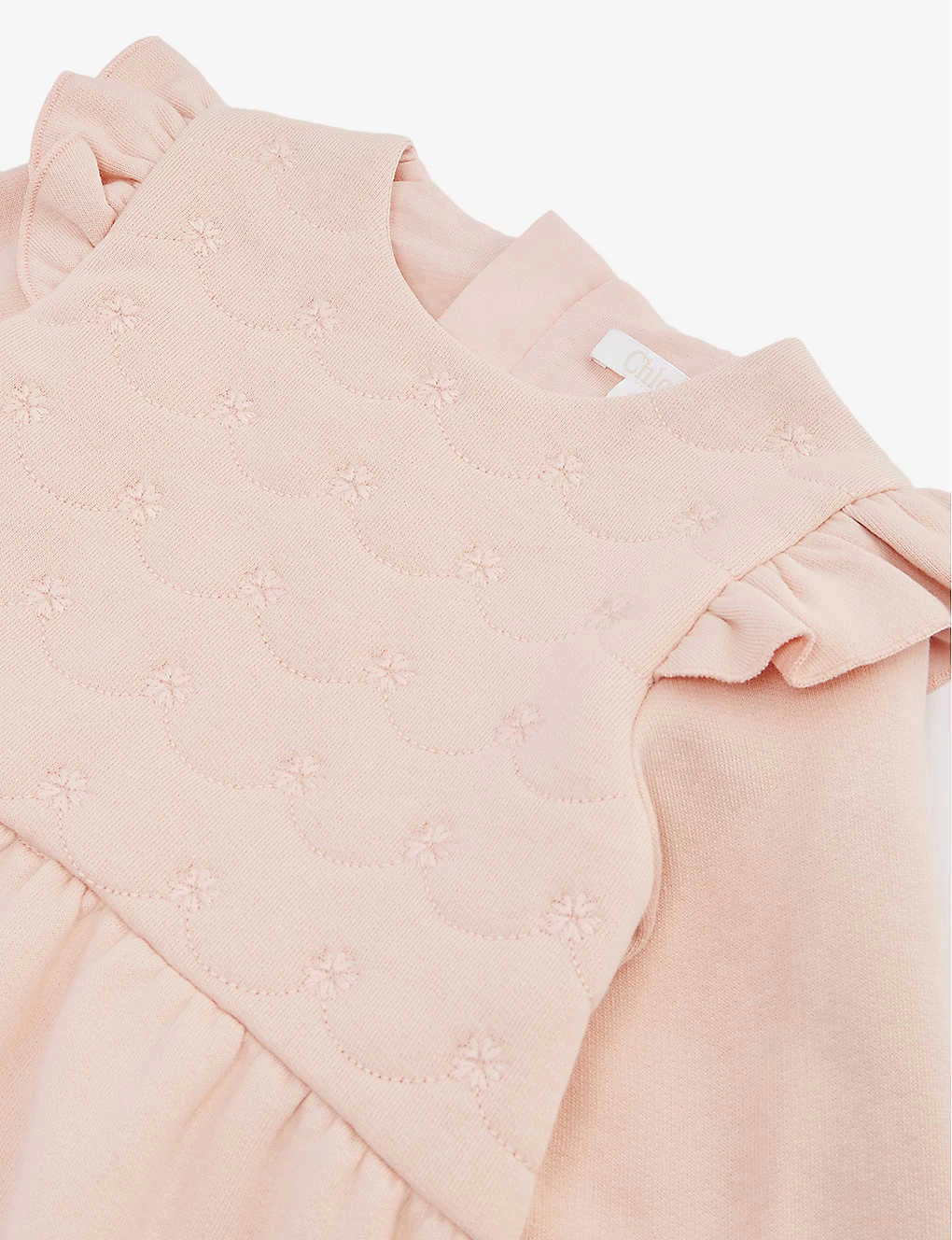 Chloé Ruffled Floral-embroidered Cotton-jersey Dress 6 Months-3 Years