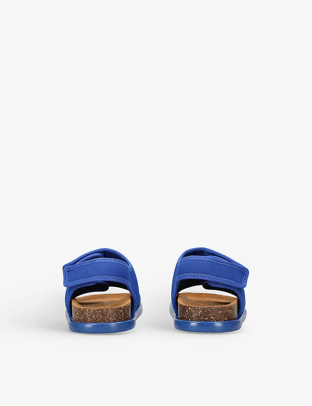 - Round toe, open toe, cushioned sole, logo embroidered straps, strap at back ankle