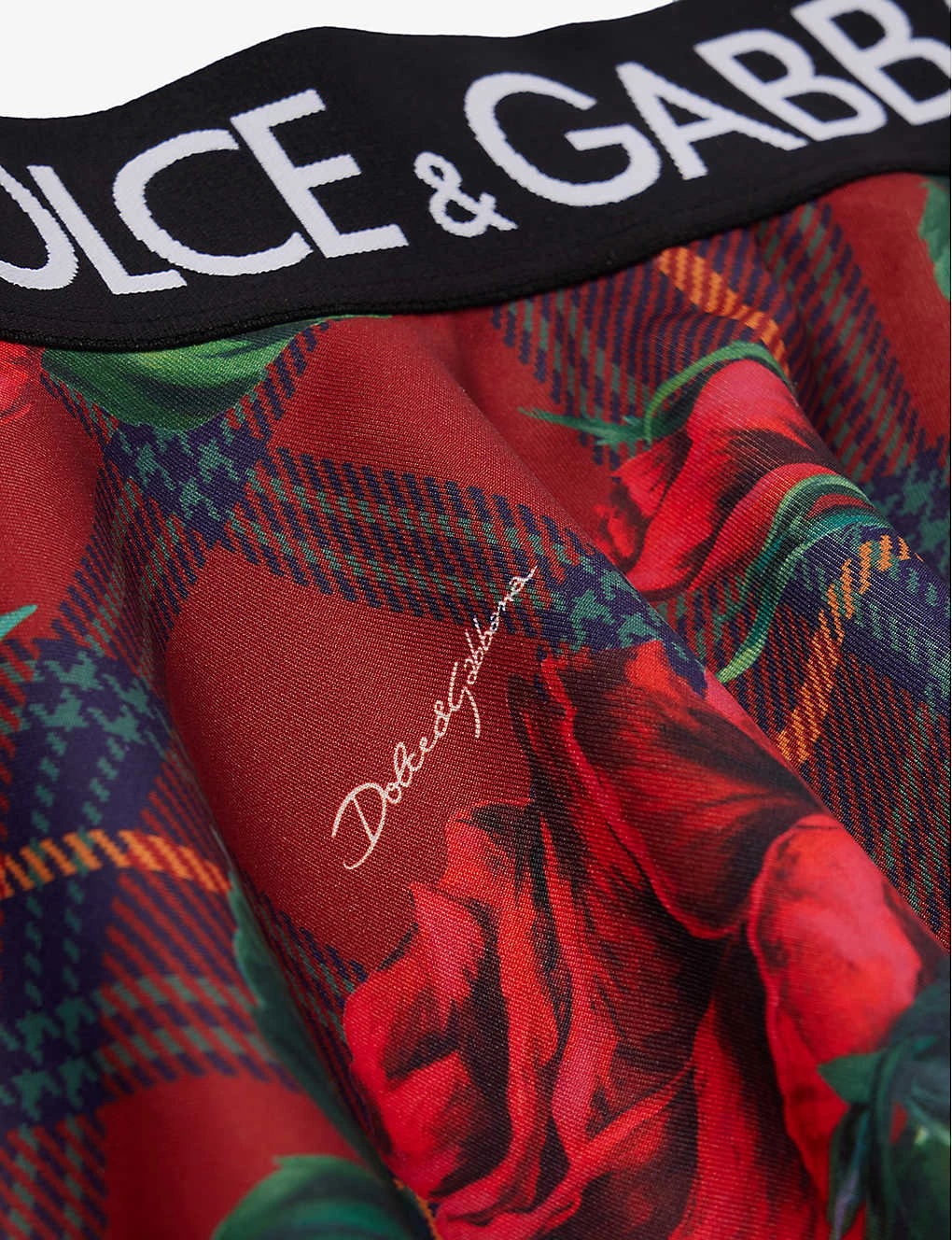 Dolce & Gabbana Plaid Floral-pattern Logo-waistband Stretch-woven Skirt 8-12 Years