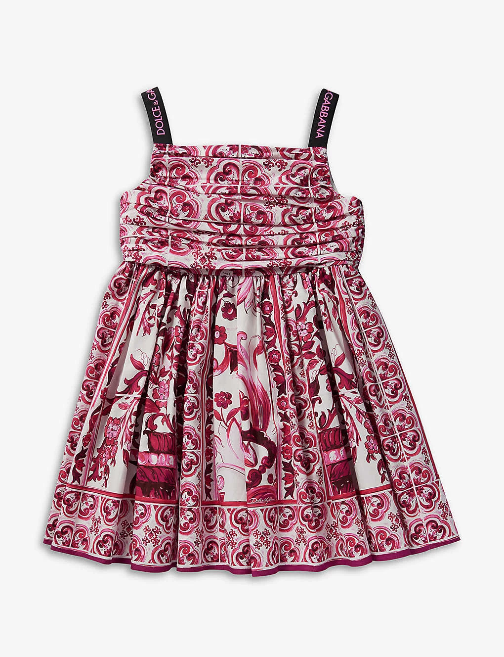 Dolce & Gabbana Senza Graphic-pattern Gathered Cotton Dress 8-12 Years