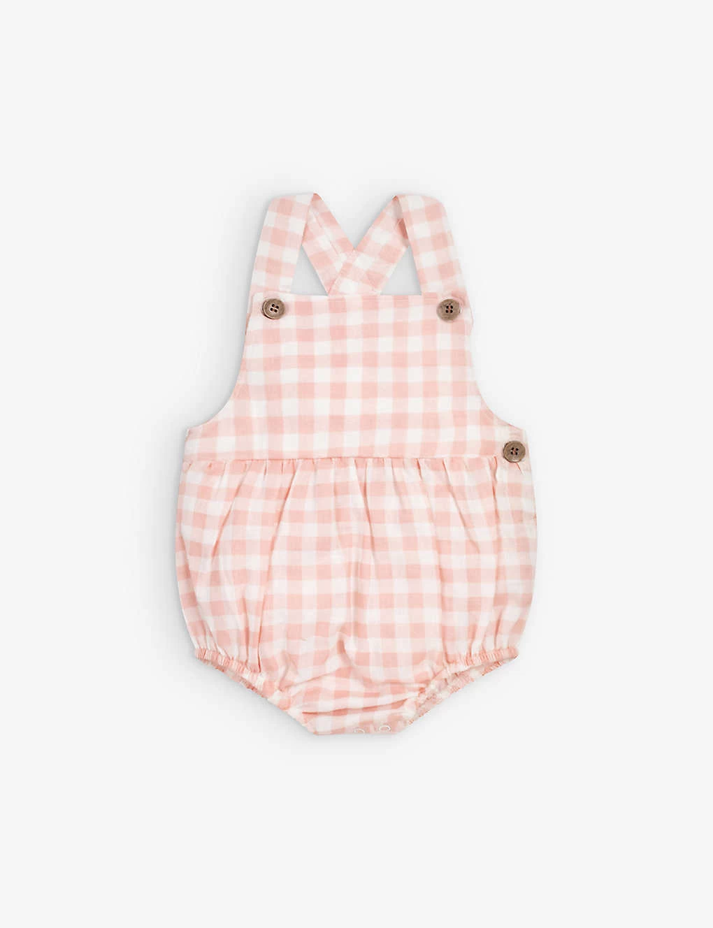 Gingham-print Dungaree Cotton Romper 0-24 Months