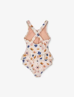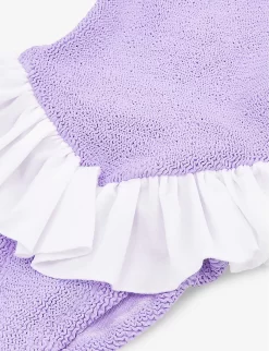 Denise Crinkle-texture Frill-trim Stretch-woven Swimsuit 7-12 Years