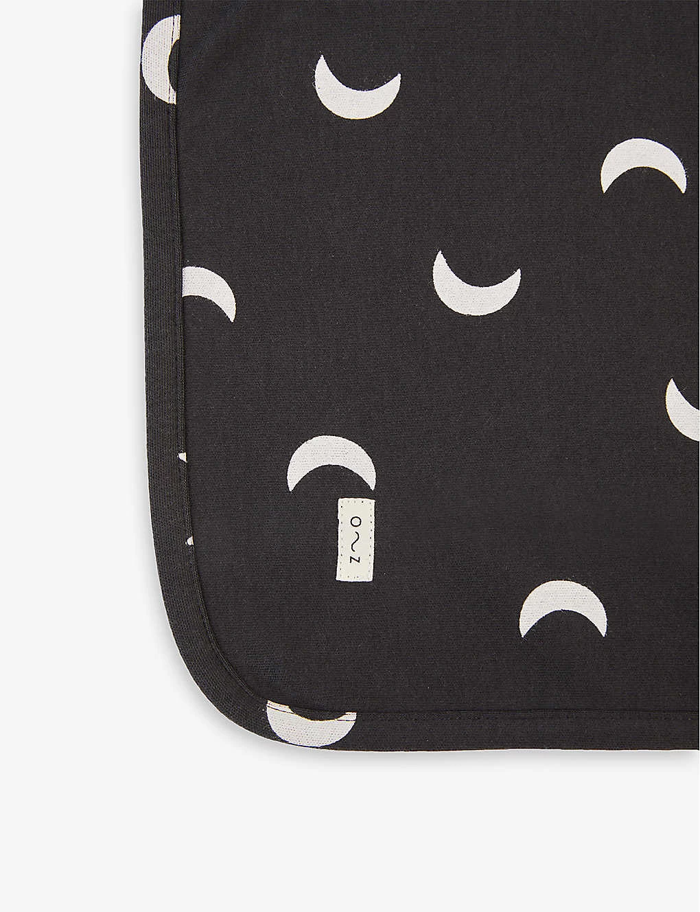 - All-over Crescent moon pattern, embroidered patch at front, curved hem