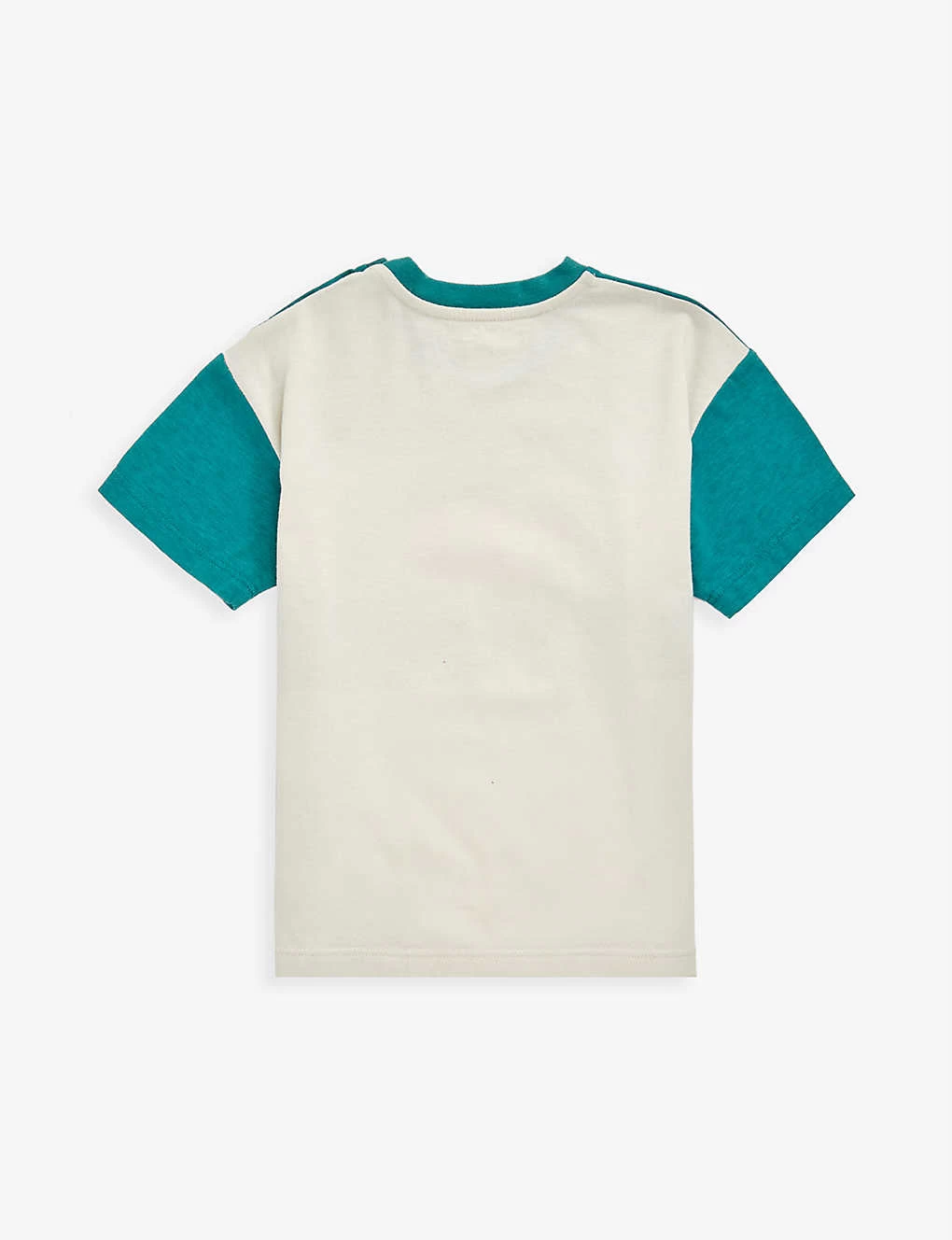 - Regular fit, crewneck, ribbed trim at neck, short sleeves, contrast panel at front, branding at chest