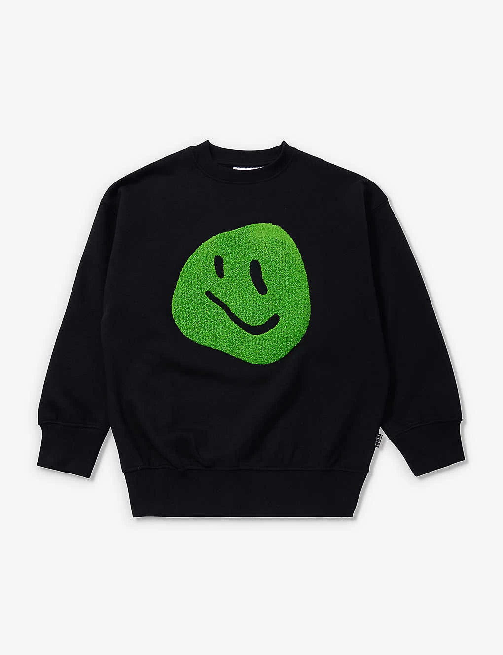 - Regular fit, crewneck, long sleeves, contrast towelling smiley at front, ribbed trims