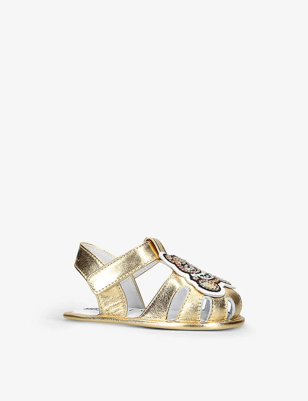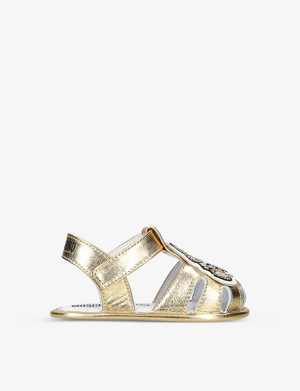 MOSCHINO Teddy Bear-patch Metallic-leather Sandals 0-6months