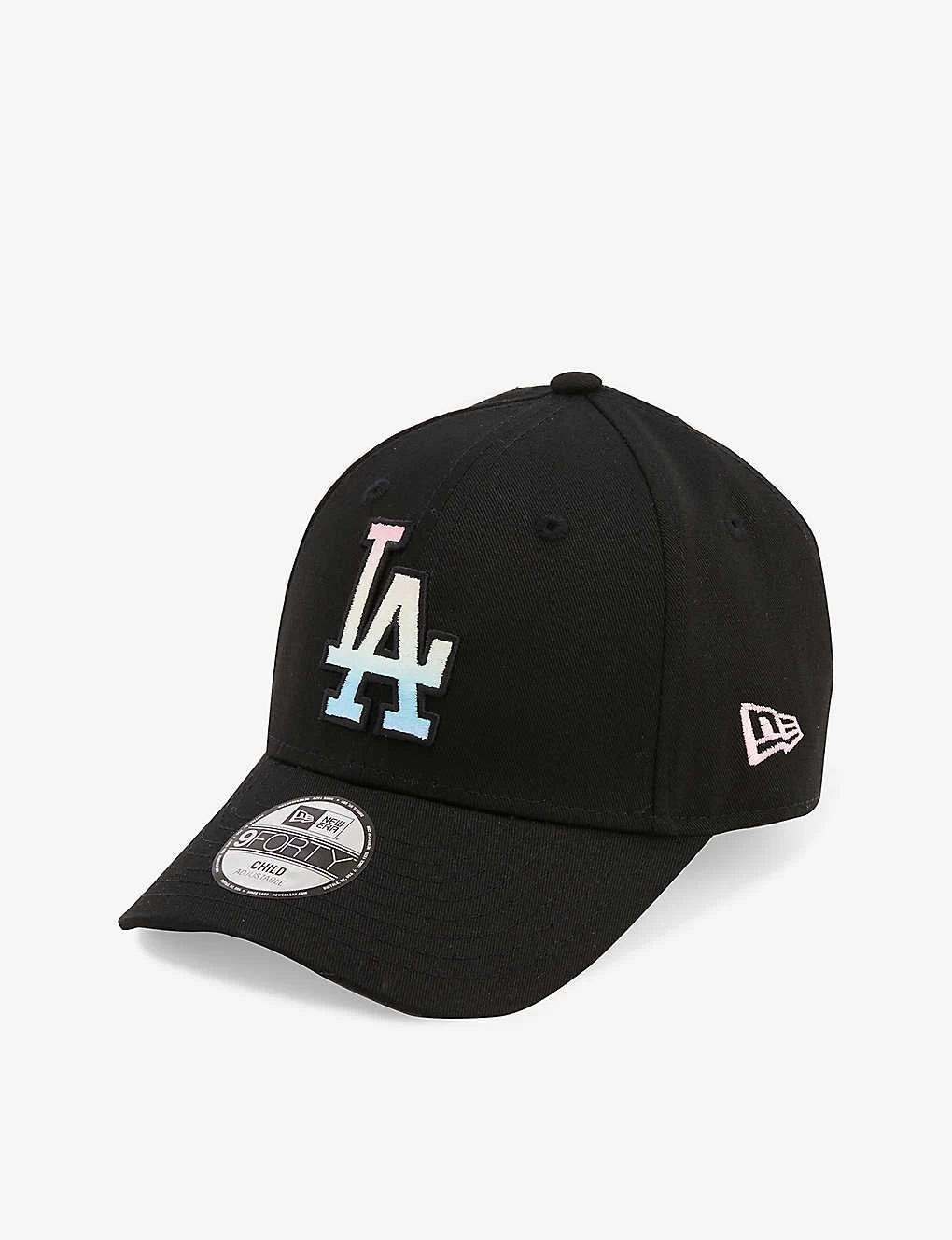 - Curved brim, embroidered gradient brand appliqué at front, embroidered branding at side, all-over twill texture