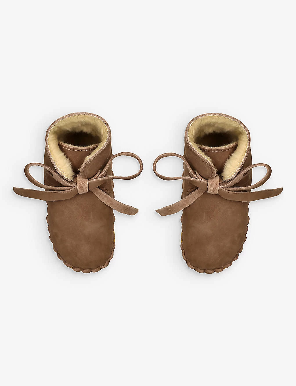 Pina Shearling-lined Top-stitch Leather Boots 6-12 Months