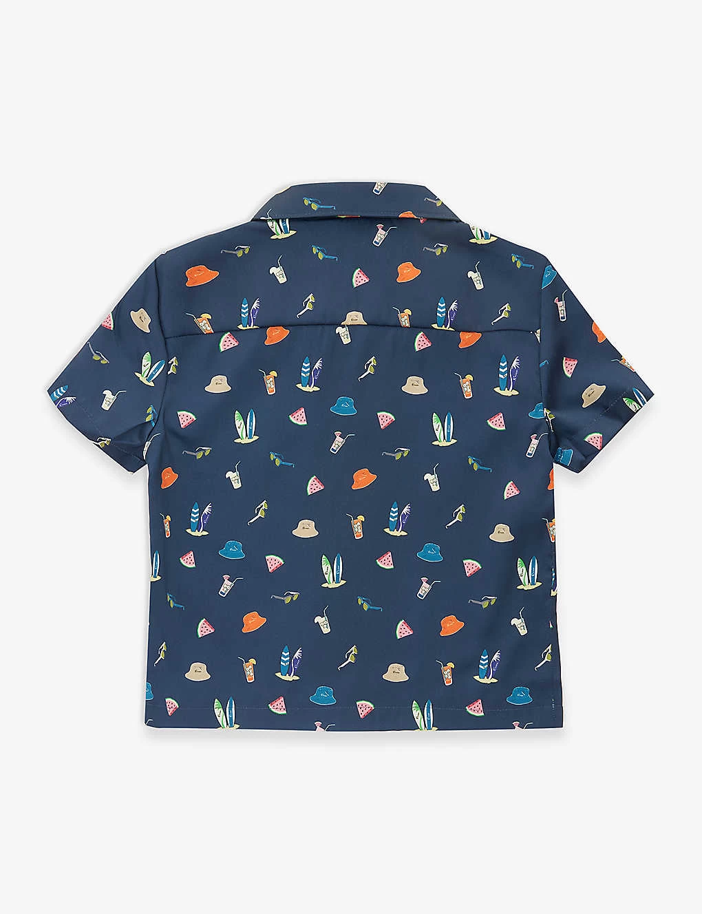 - Relaxed fit, collar, short sleeves, straight yoke at back, all over graphic print, straight hem