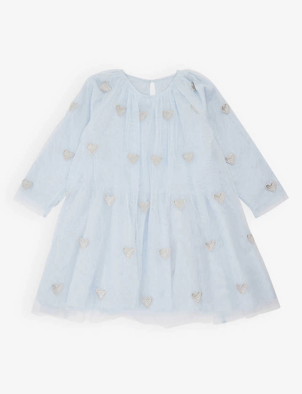 STELLA MCCARTNEY Heart-embroidered Recycled-polyester Tulle Dress 6-36 Months